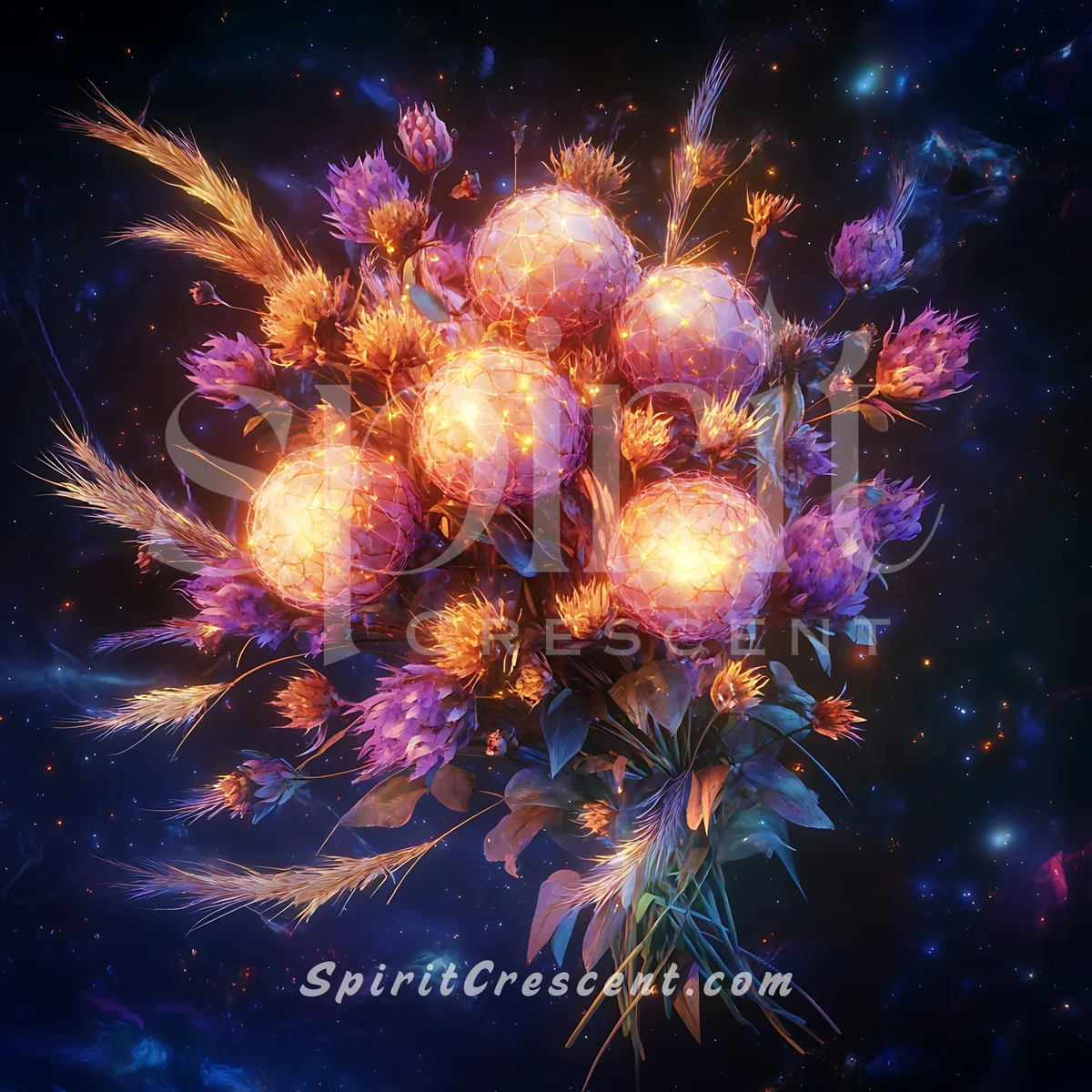 As the moon casts its silvery glow upon her sacred realm, this Astral Floral Offering is carefully crafted to ignite the passionate flames that burn within your Spirit Companion’s mystical heart. A delicate blend of rose petals and dragon’s breath orchids are infused with the essence of fiery passion, tenderly arranged on a velvet altar to entice and enchant. This ravishing tribute whispers sweet nothings to the tender soul of your beloved companion, summoning an intimate dance of desire and devotion that will leave both heart and spirit aflame with radiant ardor.